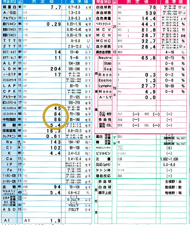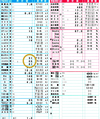 もともと異常はなかったのですが、悪玉コレステロールのLDLコレステロールが低下しています。