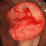 大腸の粘膜にがんや大きなポリープがある場合、出血が起こることがあり、便に血が混じります。