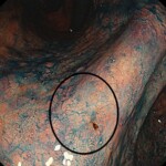 ②通常では見つけられずインジゴカルミンを散布してやっと見つかった早期胃がん
