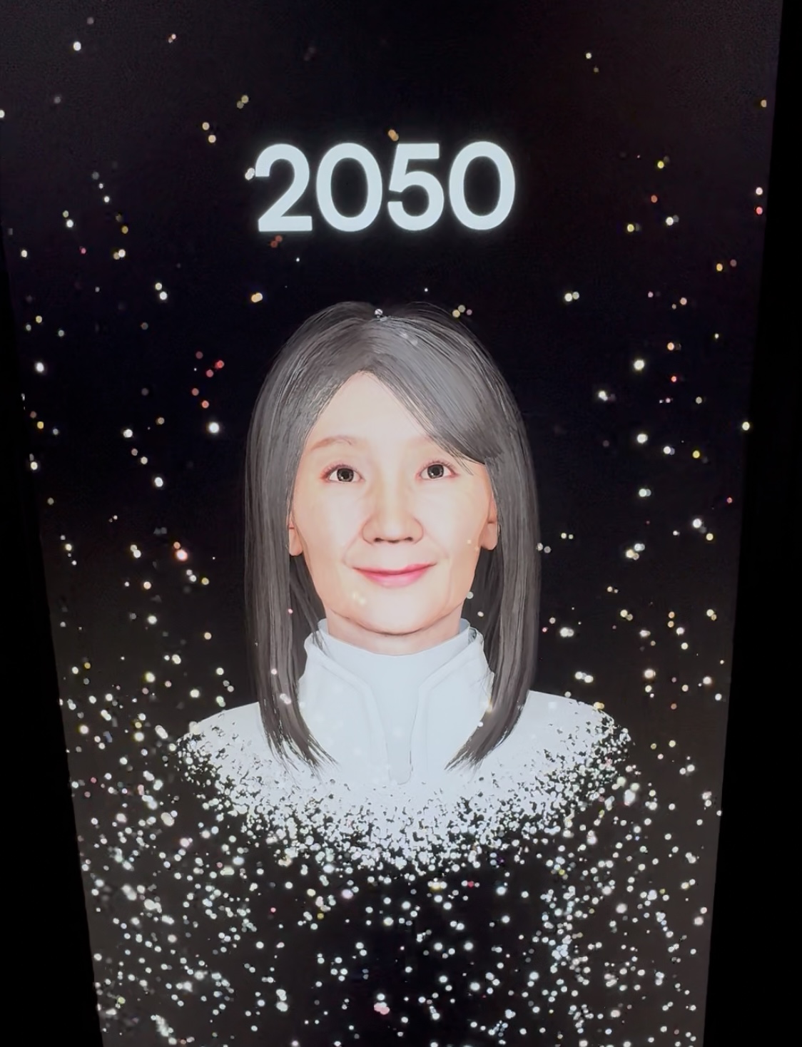 測定した結果を元に、25年後の自分の姿を映像化までしてくれます。70歳の私の姿は想像していたよりも若かったです!笑