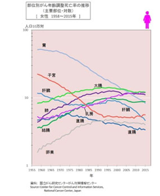 2020年には男女ともがん死因の第1位になると統計上推察されており、急増の一途をたどっています。