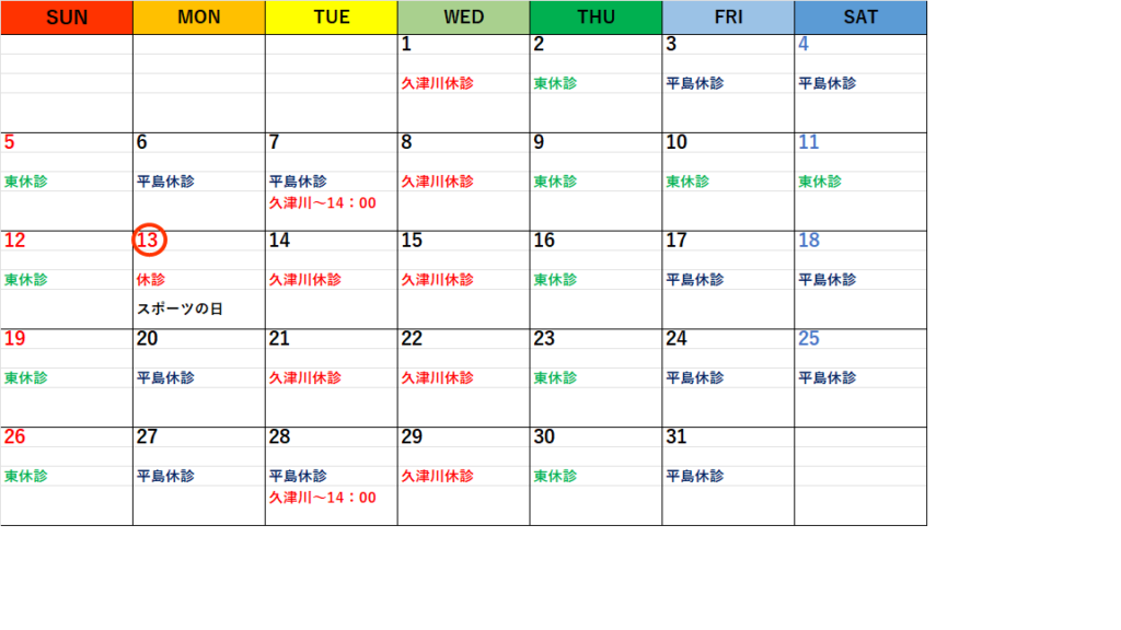 2025年10月の休診日および診療時間の変更についてお知らせいたします。